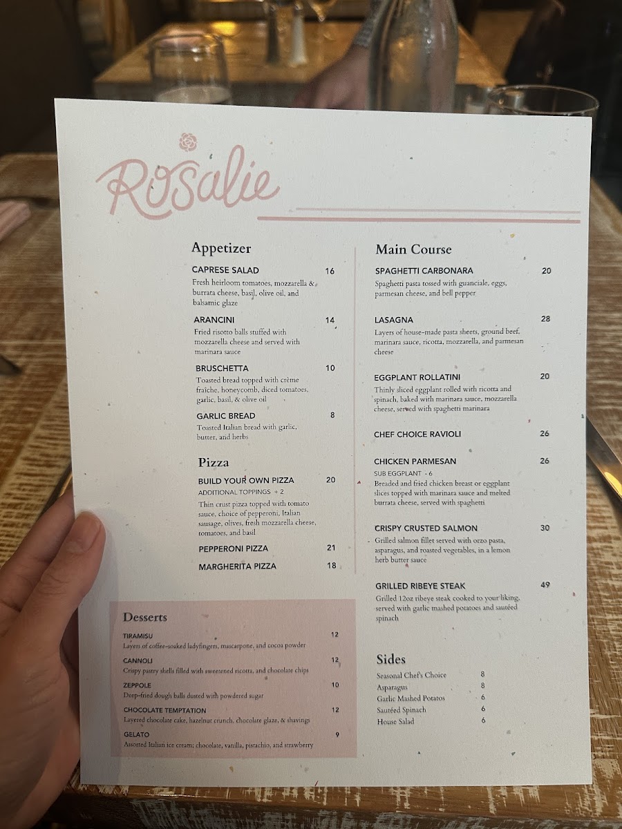 As for desserts, the Berry Tiramisu and refreshing Limoncello Sorbet offer the perfect sweet finish to your meal. At Rosalie Italian Soul, every dish tells a story, creating a flavorful journey that is not just a meal, but a heartfelt experience.